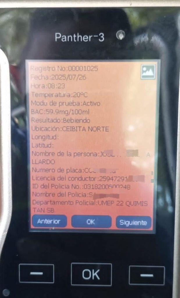 Además, dijeron que al practicarle la prueba de alcoholemia al extranjero, salió positiva con 59.9mg/100 grados de alcohol.