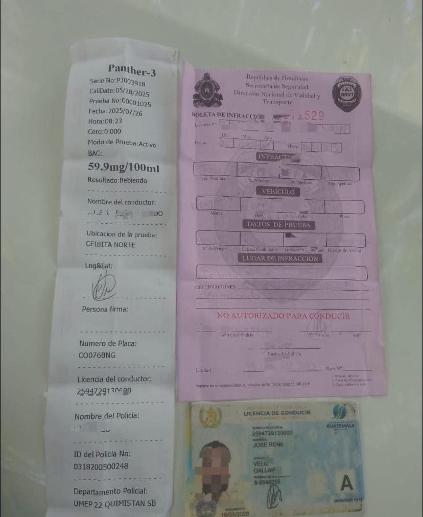 «Un vehículo marca Freigthliner, tipo cabezal con placas de Guatemala, ha sido decomisado a ciudadano de origen guatemalteco, por conducir en estado de ebriedad poniendo en riesgo su vida y la de las las demás personas», explicaron las autoridades.
