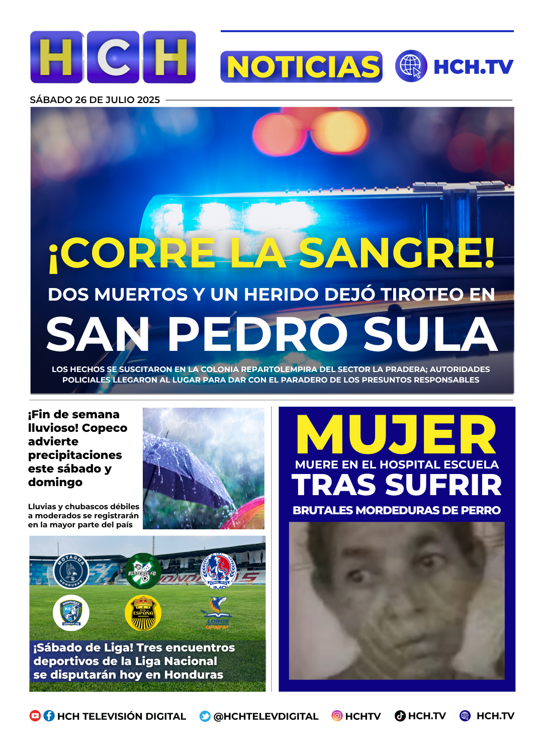 © 2025 - HCH Televisión Digital - Noticias de Honduras y el Mundo. Anillo Periférico, Complejo Empresarial Tegucigalpa, Honduras, C.A. Tel: (504) 2235-3245 / 2235-3246 / 2235-4875 / 2235-4876 LLÁMENOS GRATIS DESDE EE.UU: 3052801682 y 3052801735 © Copyright 2025 - HCH Televisión Digital. Todos nuestros contenidos están protegidos con derechos de autor.