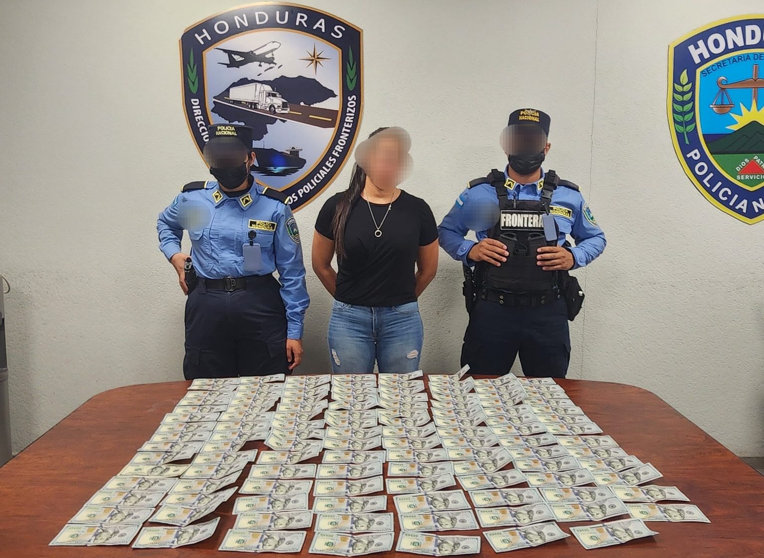 Una mujer hondureña fue detenida en el Aeropuerto Internacional de Palmerola, en el departamento de Comayagua, por transportar más de 12 mil dólares estadounidenses sin presentar justificación legal.