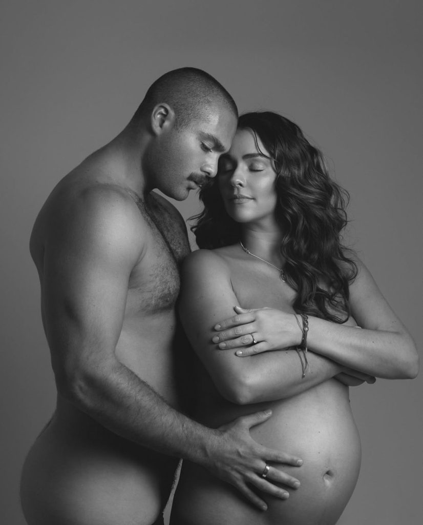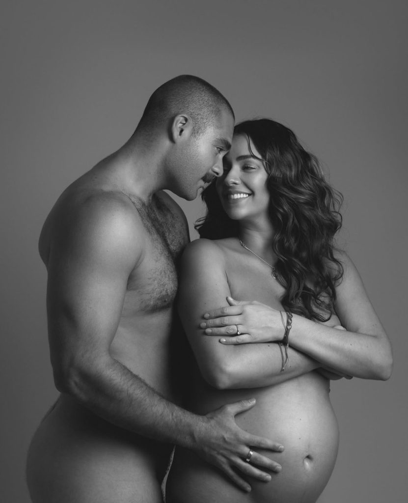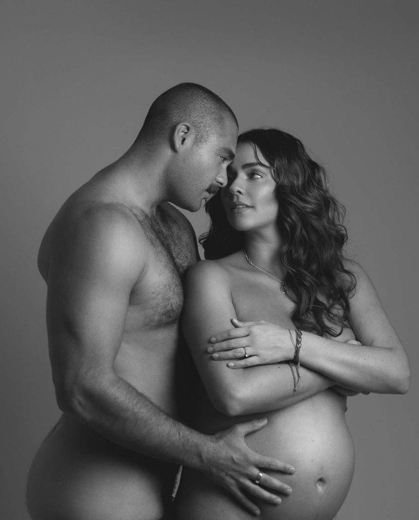 «El fruto de nuestro amor. Estamos muy felices de recibirte, ¡te amamos! Atención: tus papás», lee el mensaje junto a las fotos de ambos donde muestran un desnudo artístico.