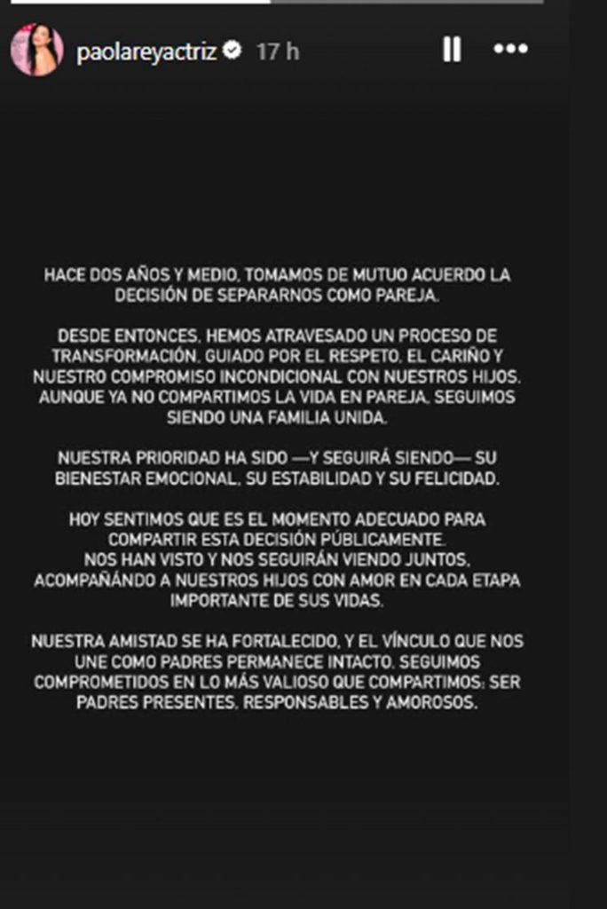¿Por qué han tardado tanto en decirlo? También lo explica: «»Hoy sentimos que es el momento adecuado para compartir esta decisión públicamente. Nos han visto y nos seguirán viendo juntos. Acompañando a nuestros hijos con amor en cada etapa importante de sus vidas. Nuestra amistad se ha fortalecido, y el vínculo que nos une como padres permanece intacto. Seguimos comprometidos en lo más valioso que compartimos: ser padres presentes, responsables y amorosos”, prosigue la publicación.