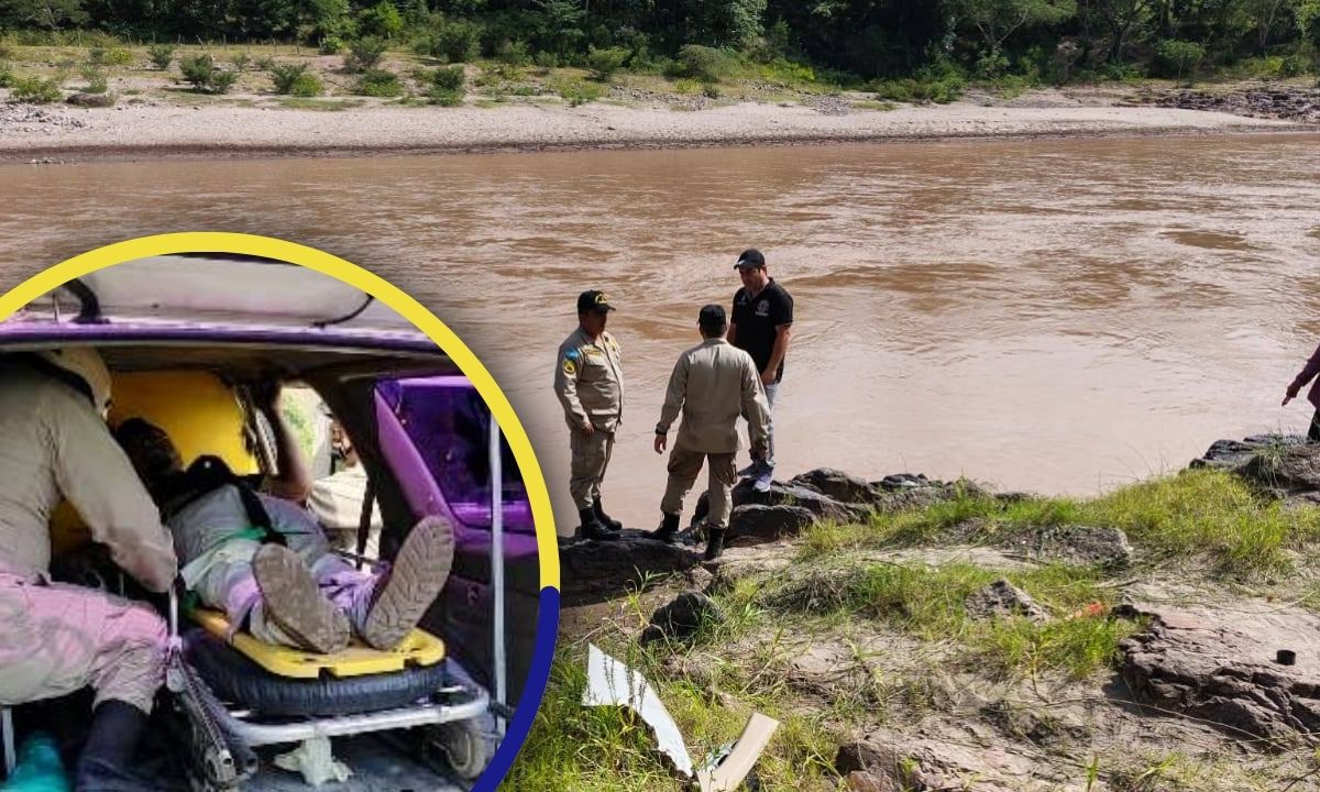 Preliminarmente, el Cuerpo de Bomberos que está en la zona, supone que es el conductor del vehículo quien aún está atrapado y bajo las profundidades del caudal.