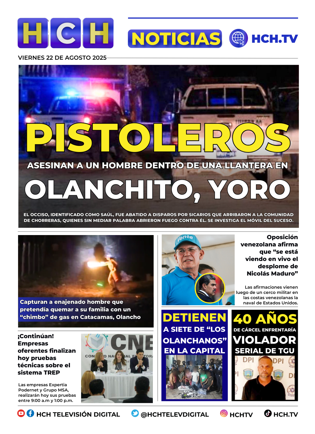© 2025 - HCH Televisión Digital - Noticias de Honduras y el Mundo. Anillo Periférico, Complejo Empresarial Tegucigalpa, Honduras, C.A. Tel: (504) 2235-3245 / 2235-3246 / 2235-4875 / 2235-4876 LLÁMENOS GRATIS DESDE EE.UU: 3052801682 y 3052801735 © Copyright 2025 - HCH Televisión Digital. Todos nuestros contenidos están protegidos con derechos de autor.