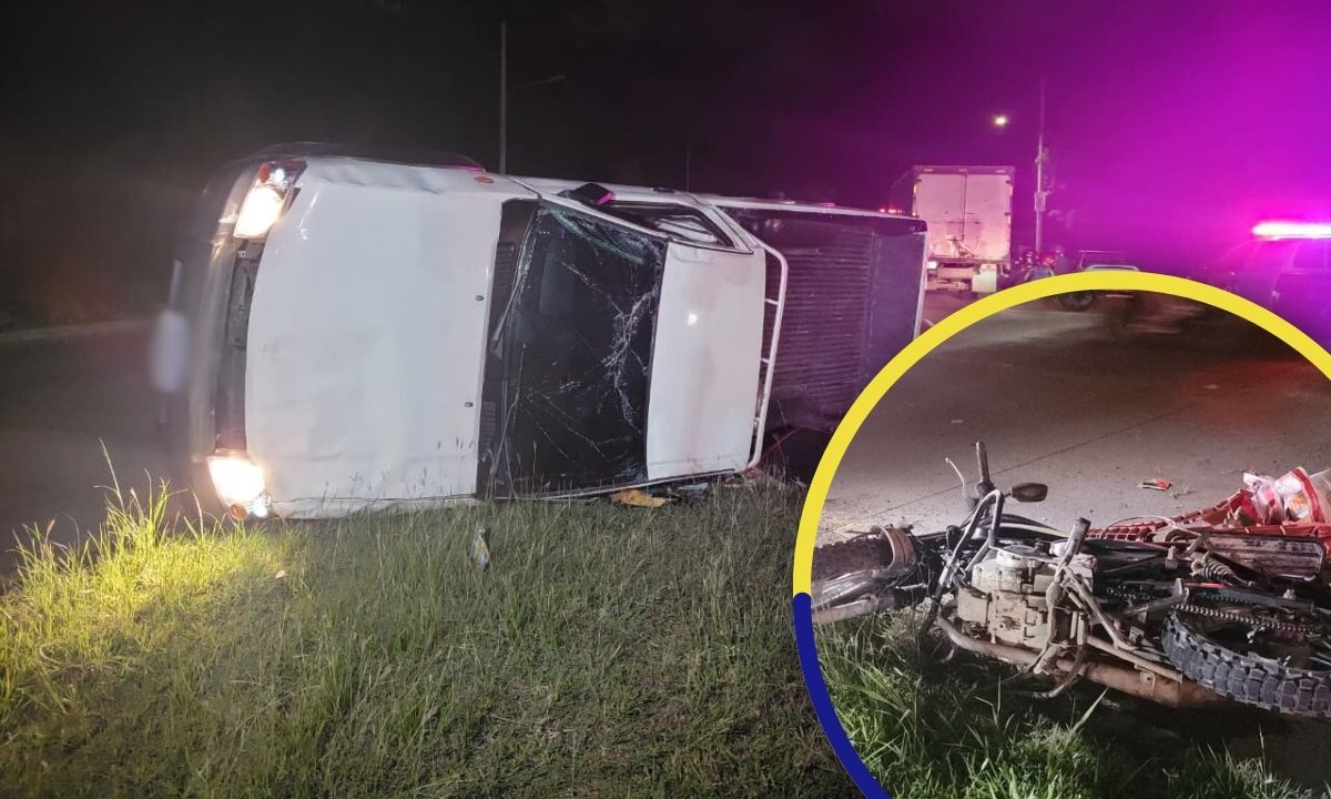 El incidente comenzó con un fuerte choque entre un vehículo tipo pick-up y una motocicleta.