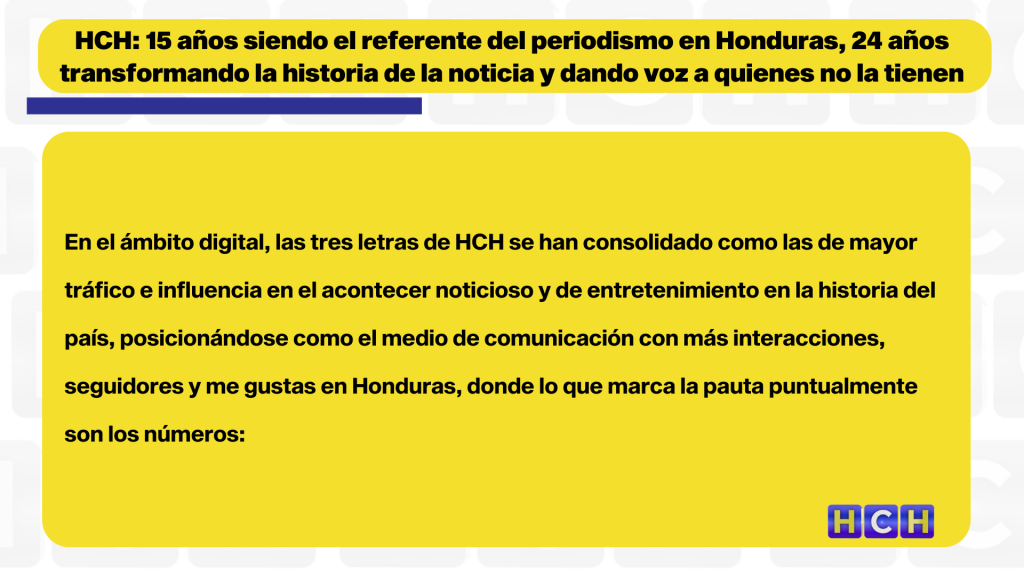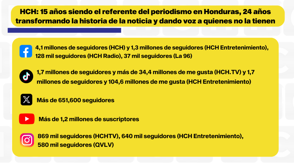 A lo largo de más de dos décadas, HCH se ha consolidado como el medio de comunicación más influyente de Honduras de la mano de Dios, individualizándose por su cercanía con la audiencia y su enfoque en la información de interés nacional.
