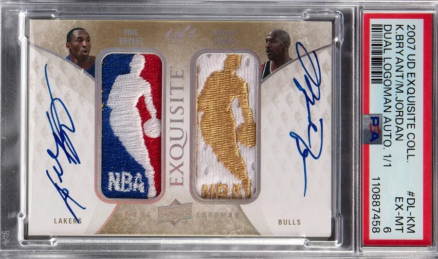 El cromo, cuyo comprador no fue identificado por la casa de subastas, pertenece a la colección Upper Deck Exquisite 2007-08 y tiene incorporado el parche del logotipo de la NBA de las camisetas de Bryant y Jordan.