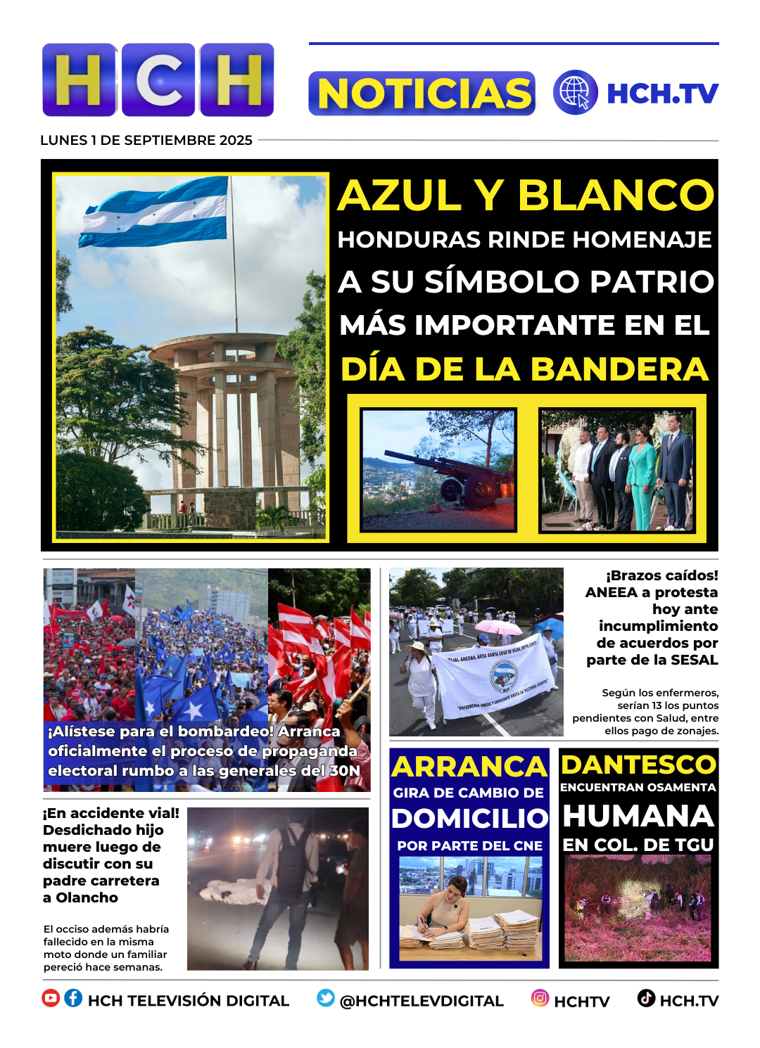 © 2025 - HCH Televisión Digital - Noticias de Honduras y el Mundo. Anillo Periférico, Complejo Empresarial Tegucigalpa, Honduras, C.A. Tel: (504) 2235-3245 / 2235-3246 / 2235-4875 / 2235-4876 LLÁMENOS GRATIS DESDE EE.UU: 3052801682 y 3052801735 © Copyright 2025 - HCH Televisión Digital. Todos nuestros contenidos están protegidos con derechos de autor.