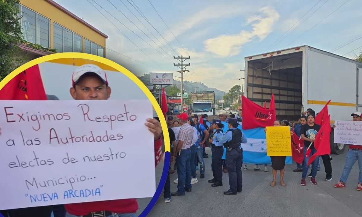 Con letreros en mano y con sus banderas listas, los militantes manifestaron que «exigimos respeto a las autoridades electas de nuestro municipio de Nueva Arcadia».