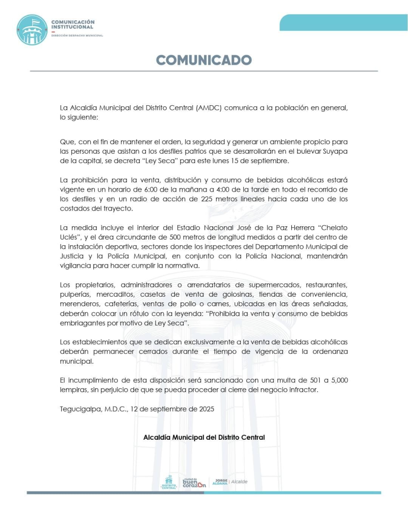 Confirmado, no habrá bebidas alcohólicas este 15 de septiembre cuando los hondureños celebremos las fiestas patrias.