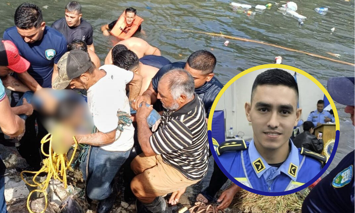 Hallan el cadáver de Kevin Pérez, policía hondureño que se lanzó a la corriente de un quinel para intentar salvar a dos menores de edad que se ahogaban en San Pedro Sula. Uno de los menores aún sigue desaparecido.