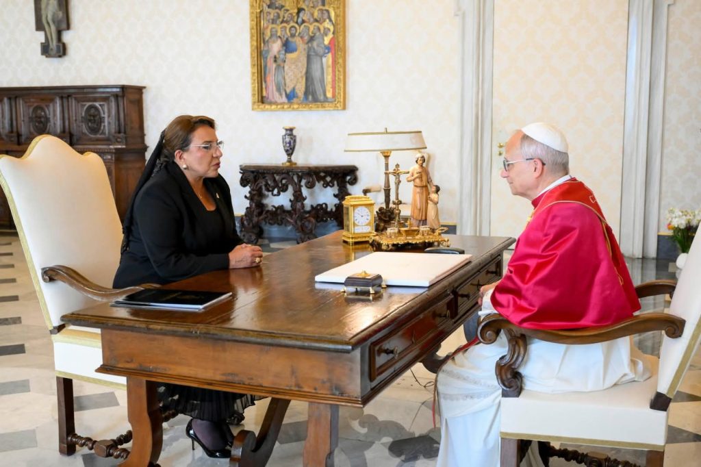 La Presidenta de la República de Honduras, Xiomara Castro, sostuvo hoy una audiencia privada con Su Santidad el Papa León XIV en la Ciudad del Vaticano, encuentro que consolida los lazos de amistad y respeto con la Santa Sede.