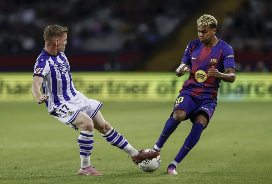 De ahí en adelante, Remiro privó al Barça del gol en reiteradas ocasiones, el colegiado anuló a Lamine Yamal un tanto por fuera de juego, Szczesny realizó una parada de mérito para evitar el empate de Oyarzabal, y en los minutos finales Kubo y Lewandowski se toparon con el larguero en dos acciones consecutivas.