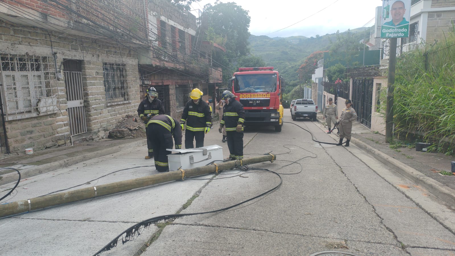 Posteriormente, cuadrillas de la Empresa Nacional de Energía Eléctrica (ENEE) asumieron los trabajos para interrumpir totalmente el suministro y sustituir el poste dañado.