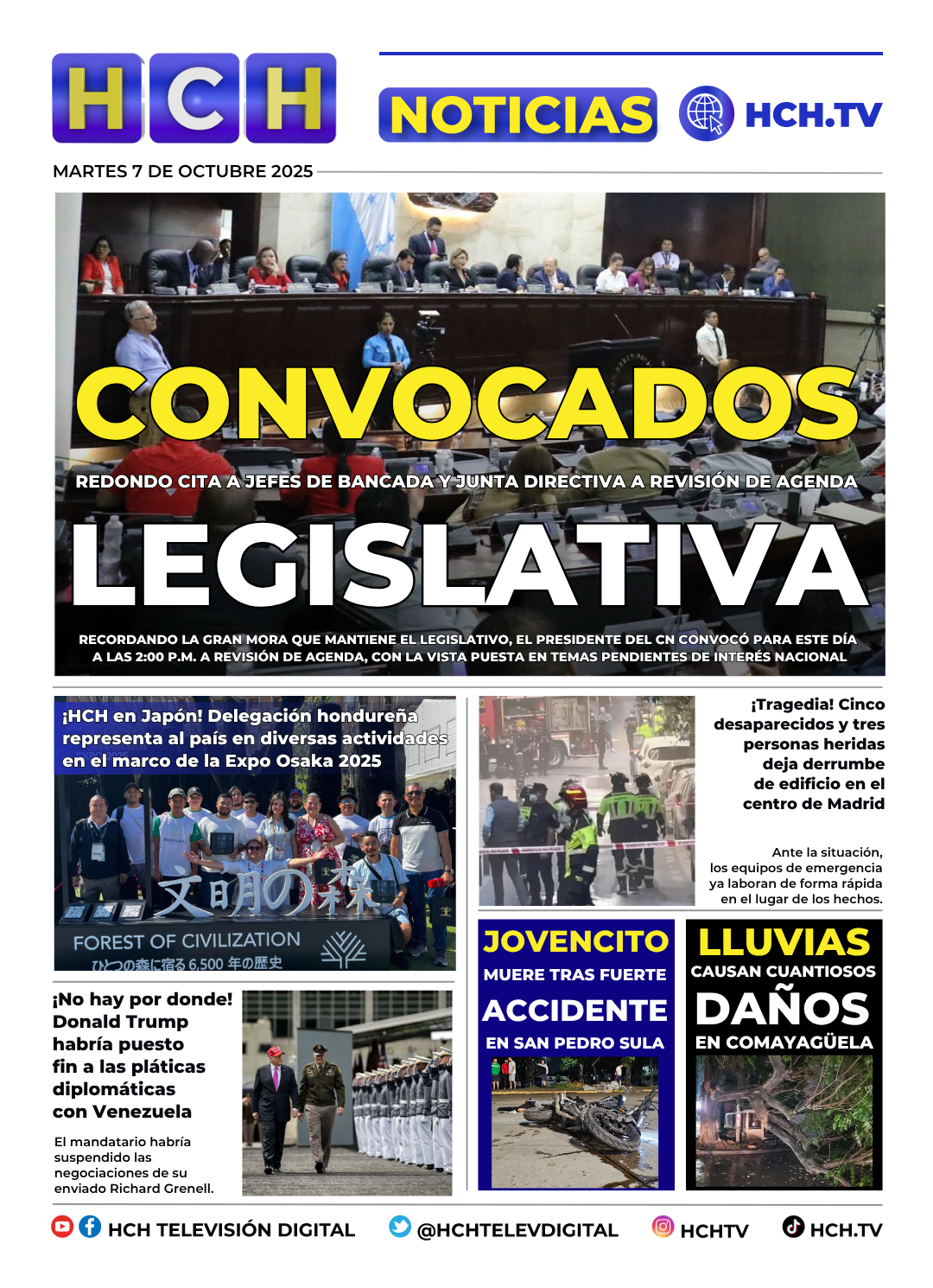 © 2025 - HCH Televisión Digital - Noticias de Honduras y el Mundo. Anillo Periférico, Complejo Empresarial Tegucigalpa, Honduras, C.A. Tel: (504) 2235-3245 / 2235-3246 / 2235-4875 / 2235-4876 LLÁMENOS GRATIS DESDE EE.UU: 3052801682 y 3052801735 © Copyright 2025 - HCH Televisión Digital. Todos nuestros contenidos están protegidos con derechos de autor.