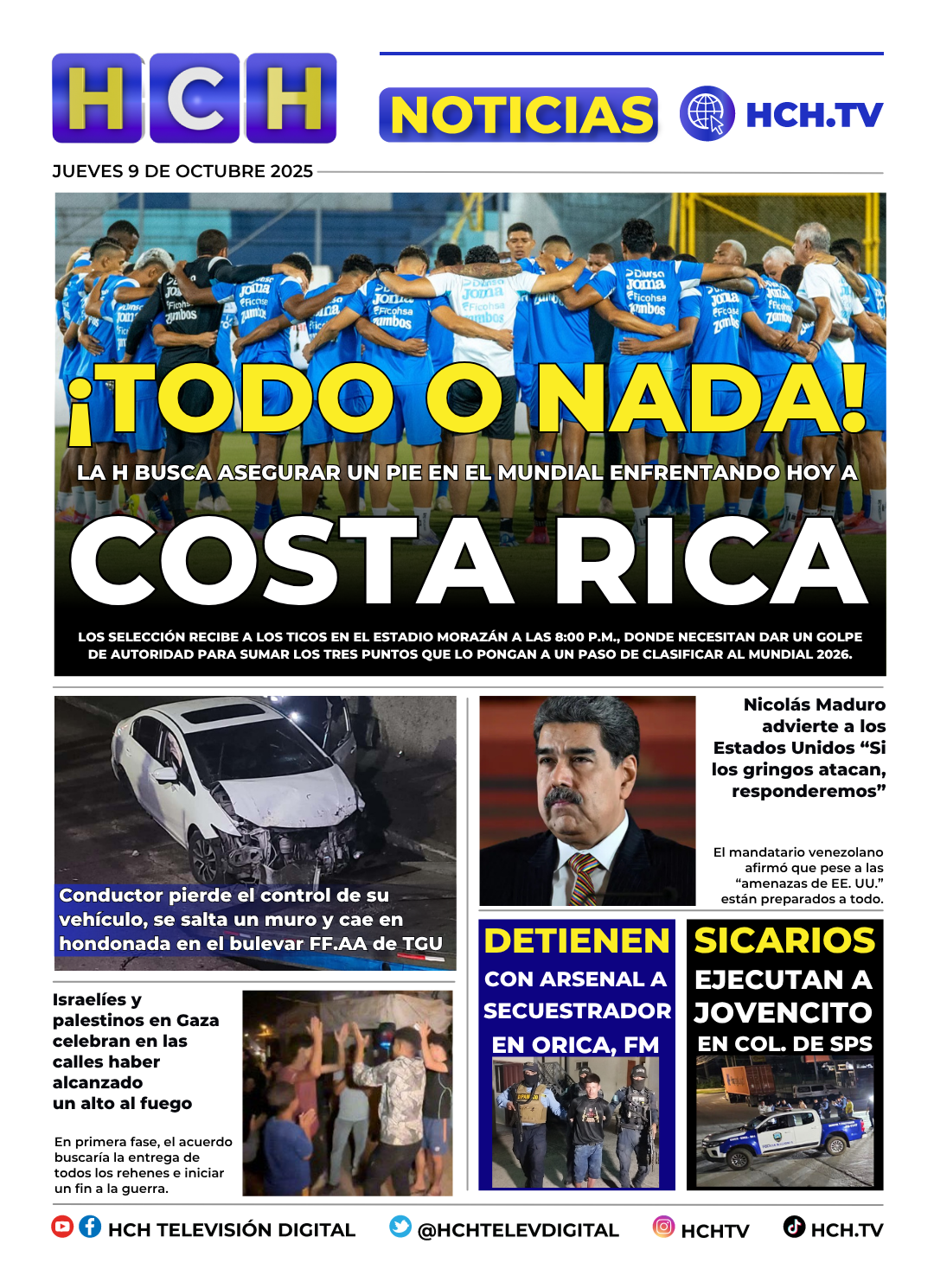 © 2025 - HCH Televisión Digital - Noticias de Honduras y el Mundo. Anillo Periférico, Complejo Empresarial Tegucigalpa, Honduras, C.A. Tel: (504) 2235-3245 / 2235-3246 / 2235-4875 / 2235-4876 LLÁMENOS GRATIS DESDE EE.UU: 3052801682 y 3052801735 © Copyright 2025 - HCH Televisión Digital. Todos nuestros contenidos están protegidos con derechos de autor.