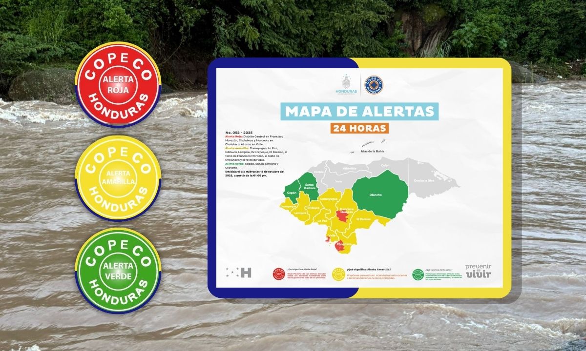 La Comisión Permanente de Contingencias (Copeco) informó este miércoles que se mantiene en alerta roja al Distrito Central y suma a este mismo nivel de alertamiento a los municipios de Choluteca y Marcovia, del departamento de Choluteca, así como al municipio de Alianza, en el departamento de Valle, debido a las crecidas de los ríos Choluteca y Goascorán, respectivamente.