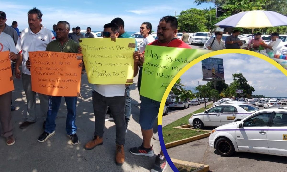 Más de 230 taxistas realizaron una protesta este sábado en el sector de Paseo de los Ceibeños, en La Ceiba, Atlántida, para rechazar el cobro de 1,500 lempiras por una supuesta certificación exigida por las autoridades del transporte.
