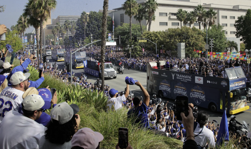 El desfile, repleto de multitudes que vitoreaban, culminó con una concentración en el Dodger Stadium el lunes 3 de noviembre de 2025.