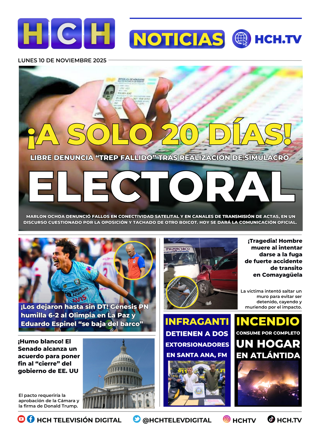© 2025 - HCH Televisión Digital - Noticias de Honduras y el Mundo. Anillo Periférico, Complejo Empresarial Tegucigalpa, Honduras, C.A. Tel: (504) 2235-3245 / 2235-3246 / 2235-4875 / 2235-4876 LLÁMENOS GRATIS DESDE EE.UU: 3052801682 y 3052801735 © Copyright 2025 - HCH Televisión Digital. Todos nuestros contenidos están protegidos con derechos de autor.