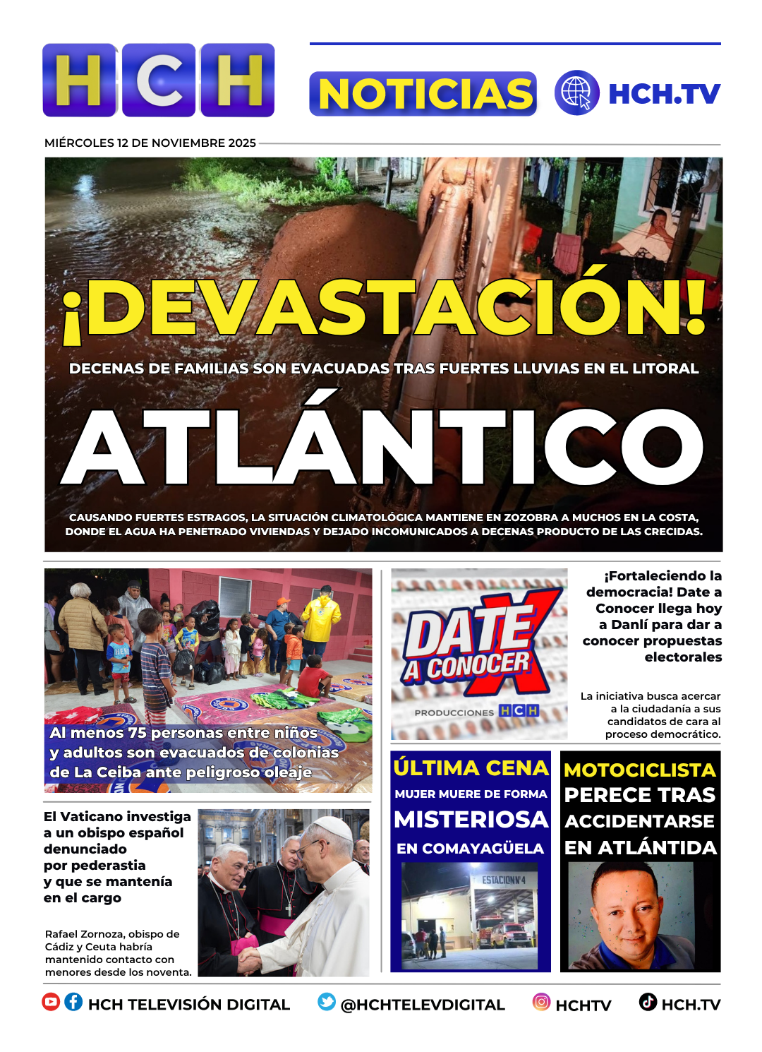 © 2025 - HCH Televisión Digital - Noticias de Honduras y el Mundo. Anillo Periférico, Complejo Empresarial Tegucigalpa, Honduras, C.A. Tel: (504) 2235-3245 / 2235-3246 / 2235-4875 / 2235-4876 LLÁMENOS GRATIS DESDE EE.UU: 3052801682 y 3052801735 © Copyright 2025 - HCH Televisión Digital. Todos nuestros contenidos están protegidos con derechos de autor.