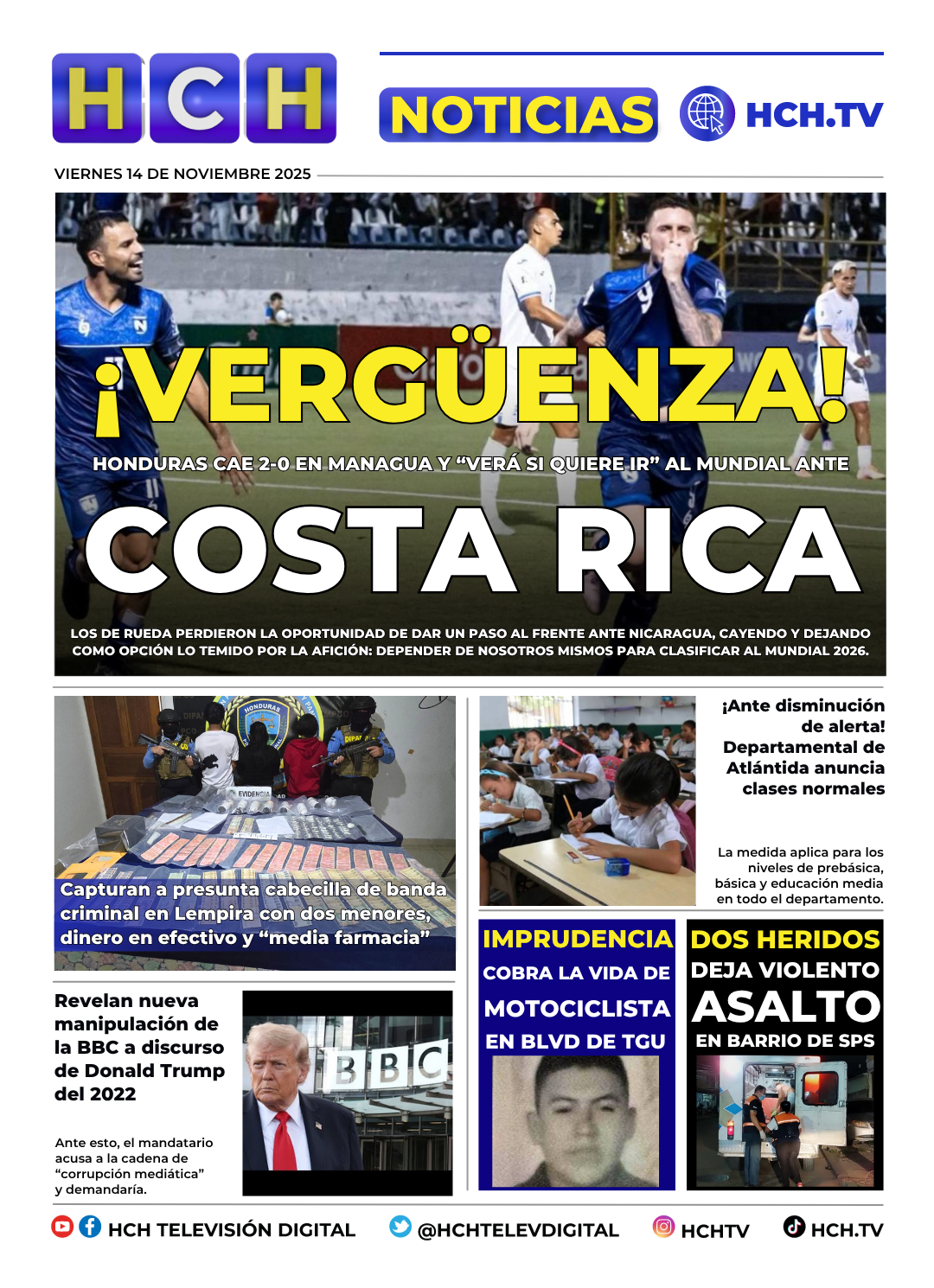 © 2025 - HCH Televisión Digital - Noticias de Honduras y el Mundo. Anillo Periférico, Complejo Empresarial Tegucigalpa, Honduras, C.A. Tel: (504) 2235-3245 / 2235-3246 / 2235-4875 / 2235-4876 LLÁMENOS GRATIS DESDE EE.UU: 3052801682 y 3052801735 © Copyright 2025 - HCH Televisión Digital. Todos nuestros contenidos están protegidos con derechos de autor.