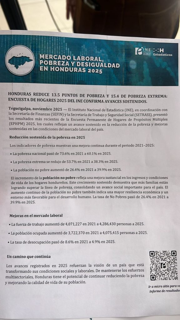 Este crecimiento indica que más familias hondureñas están superando la pobreza, lo que demuestra un avance social sostenido y una mayor resiliencia económica que favorece el desarrollo humano.