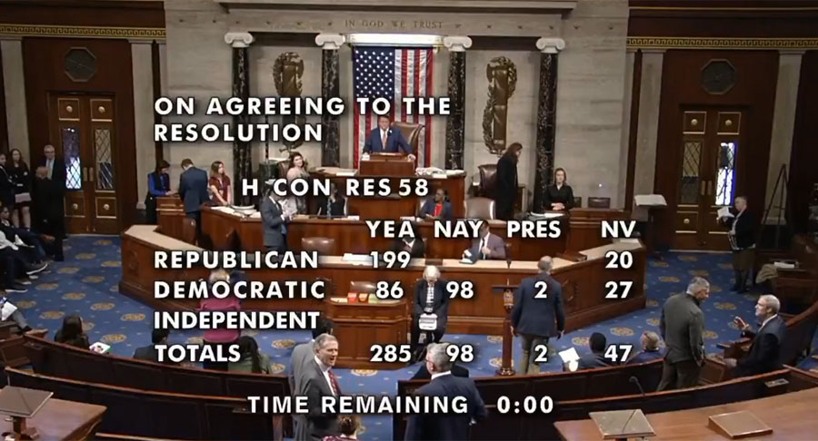 Según lo reportado por medios estadounidenses, la Cámara aprobó la resolución que condena el socialismo con el voto de los demócratas dividido, pues los cuatro principales líderes Jeffries y Catherine Clark junto a Pete Aguilar y Ted Lieu votaron con los republicanos mientras que 98 demócratas votaron en contra.