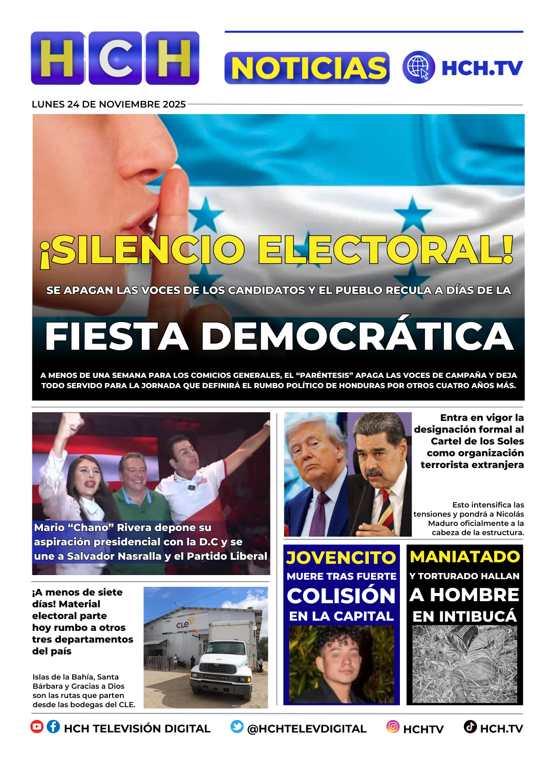 © 2025 - HCH Televisión Digital - Noticias de Honduras y el Mundo. Anillo Periférico, Complejo Empresarial Tegucigalpa, Honduras, C.A. Tel: (504) 2235-3245 / 2235-3246 / 2235-4875 / 2235-4876 LLÁMENOS GRATIS DESDE EE.UU: 3052801682 y 3052801735 © Copyright 2025 - HCH Televisión Digital. Todos nuestros contenidos están protegidos con derechos de autor.