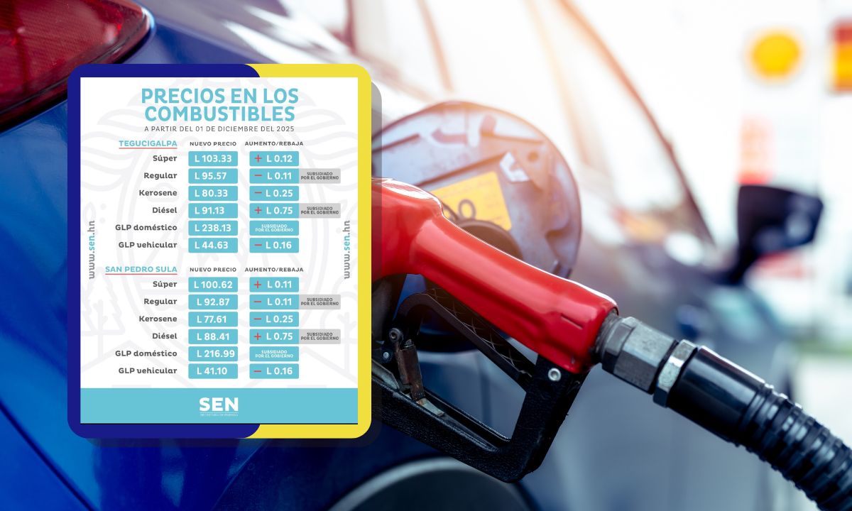 El Kerosene registrará una disminución de L. 0.25, mientras que, el Diésel, el cual también cuenta con subsidio, sube su costo a L. 0.75, y el GLP vehicular bajará L. 0.16.