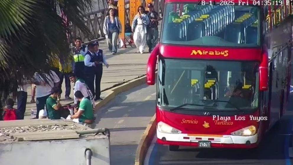 “Un hincha del Palmeiras, ya ahora identificado como Caue Brunelli Dezotti, de 38 años, estaba en el segundo nivel de este Mirabus, en la parte alta que tiene sus barandas de seguridad y expuesta al aire libre. Según lo que refieren, ha estado eufórico, hinchando con los colores del Palmeiras. Ha estado saltando en el segundo nivel del bus y no se ha percatado de que iba a cruzar por un puente peatonal a la altura de la playa Los Yuyos», manifestaron.