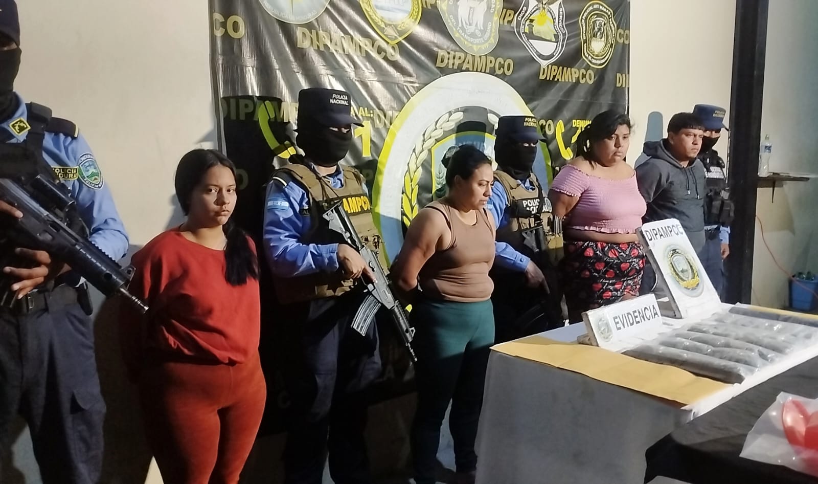Un operativo realizado en la colonia San Martín de Comayagüela dejó la captura de cuatro personas vinculadas al narcomenudeo, entre ellas tres mujeres identificadas como Zeny Martínez, de 35 años; Selena Nicol Zerna, de 24; y Génesis Espinoza, de 18.