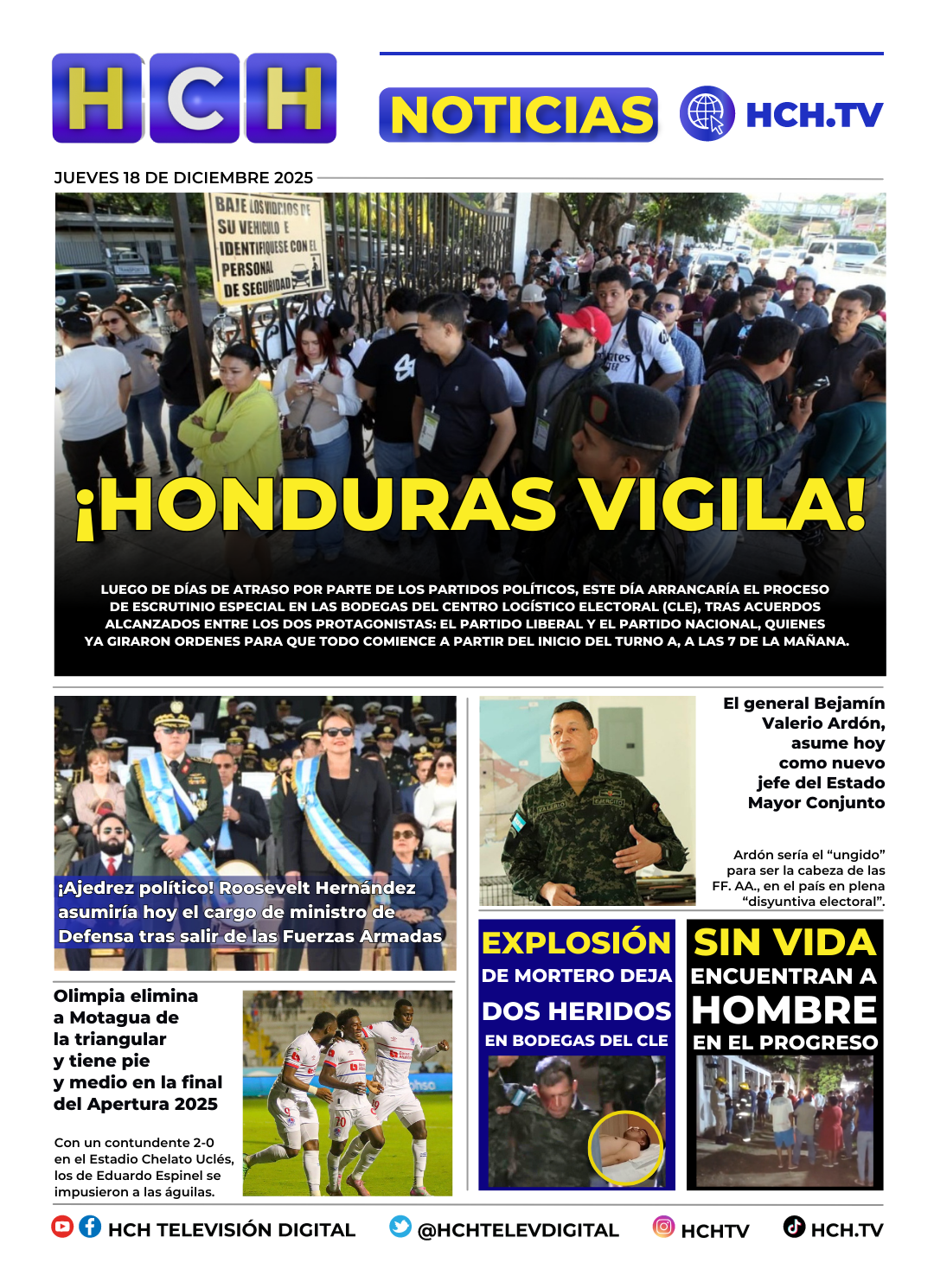 © 2025 - HCH Televisión Digital - Noticias de Honduras y el Mundo. Anillo Periférico, Complejo Empresarial Tegucigalpa, Honduras, C.A. Tel: (504) 2235-3245 / 2235-3246 / 2235-4875 / 2235-4876 LLÁMENOS GRATIS DESDE EE.UU: 3052801682 y 3052801735 © Copyright 2025 - HCH Televisión Digital. Todos nuestros contenidos están protegidos con derechos de autor.