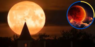Captan el ‘ascenso’ de una enorme luna anaranjada en el cielo...
