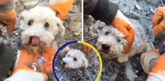 Emotivo rescate de perrito que quedó atrapado entre los escombros en...