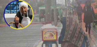 Señora vende empanadas bajo fuerte lluvia y sus imágenes se vuelven...