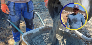 ¡Insólito! Con los dientes albañil levanta bolsa de cemento