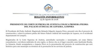 Instalan primera piedra del palacio de Justicia en Lepaera, Lempira