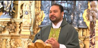 Juan Carlos Martínez párroco de la iglesia católica realiza la Homilía...