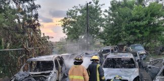 ¡En cenizas! Incendio deja calcinados ocho vehículos importados en Puerto Cortés