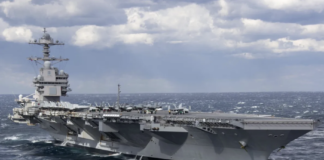 El último y más avanzado portaaviones de la Marina de EE.UU....
