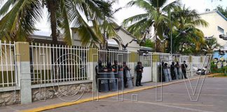 Fuertemente resguardada permanece la Dirección Departamental de Educación en Puerto Cortés...