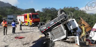 Volcamiento de rastra deja una persona atrapada en Copán