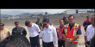 Presidente Hernández llega a el aeropuerto a coordinar salida de Bomberos...